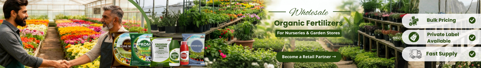 We offer a wide range of organic fertilizers including Neem Cake, Vermicompost, Bone Meal, Potash, PROM, Garden Master Liquid Fertilizers, Humic Star, Cocopeat Blocks, and Neem Oil — ideal for home gardens, terrace gardens, and kitchen gardening.